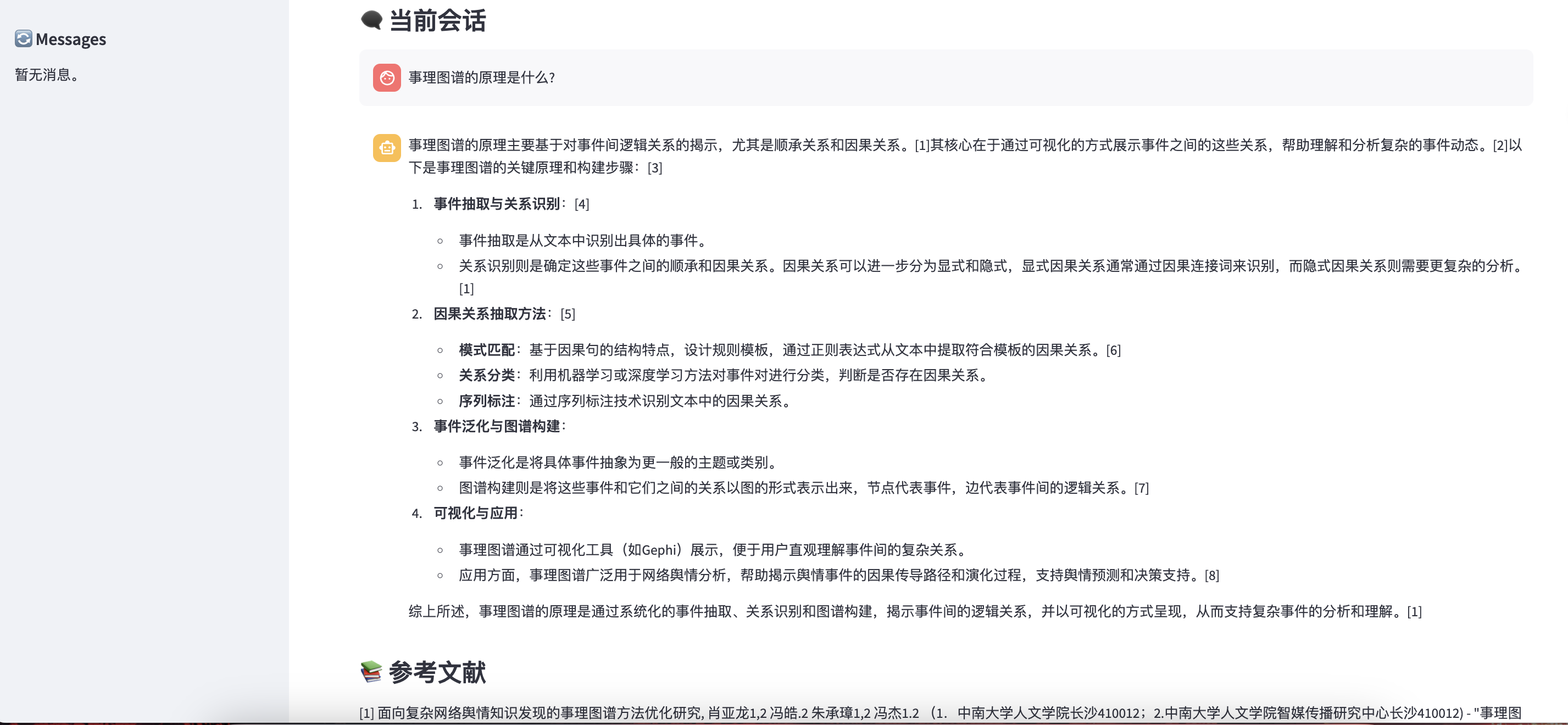 可以看到,知网的RAG没有输出任何东西,原生答案回答了定义。本项目的回答参考了许多论文的内容,回答的可理解性更强。